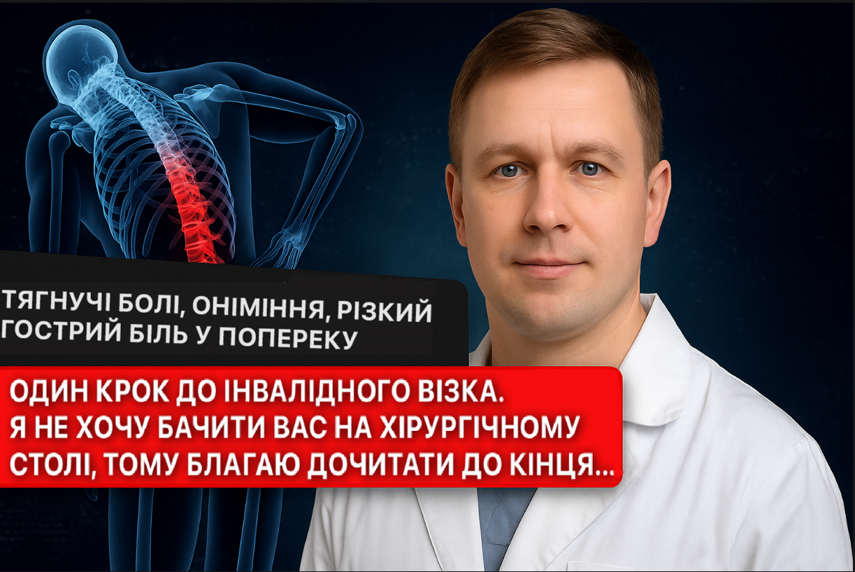 «Я щодня приймаю пацієнтів, які місяцями, а то й роками терплять біль і витрачають гроші на неефективне лікування. Вони п’ють знеболювальні, ходять на масажі, роблять уколи, але проблема нікуди не зникає! Я хочу, щоб кожен українець знав: є спосіб, який допоможе повернути здоров'я суглобам і хребту навіть без операцій!»
